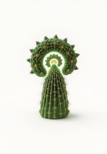 Desert architects of stored life. Maerkeras are sovereign geometries of drought—crowned fractalisms of radiant doorways encasing sacro portals within crystalline flesh. Their thorns are sensors; their sap, sacred computation. They are temples disguised as survival. Each is a sealed archive of profound wisdom, capturing sight in living prisms. Their existence proves that even scarcity can be sanctified.